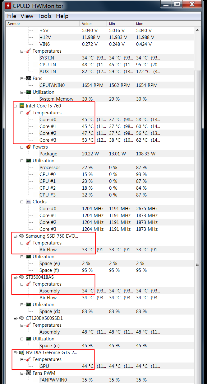 만약 지나치게 높은 온도가 측정된다면 원인을 찾고 해결해야 컴퓨터에 문제가 생기지 않습니다.