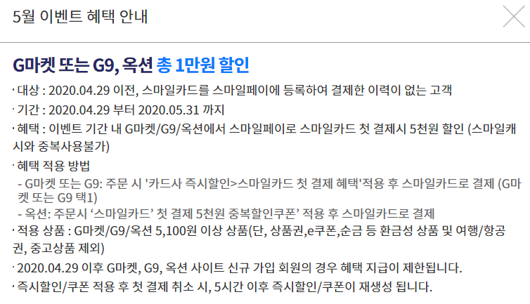 스마일카드 전용 2만원 쿠폰, 스마일카드 첫 결제 5천원 중복할인까지 적용됩니다.