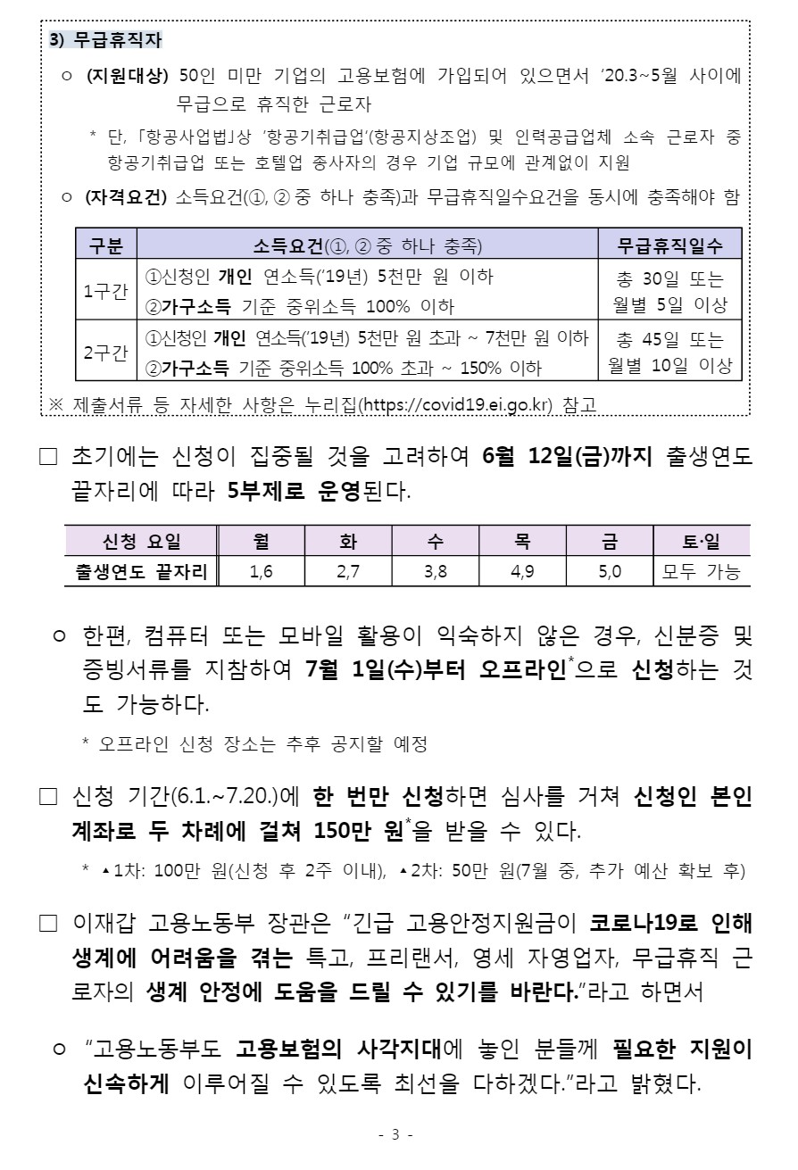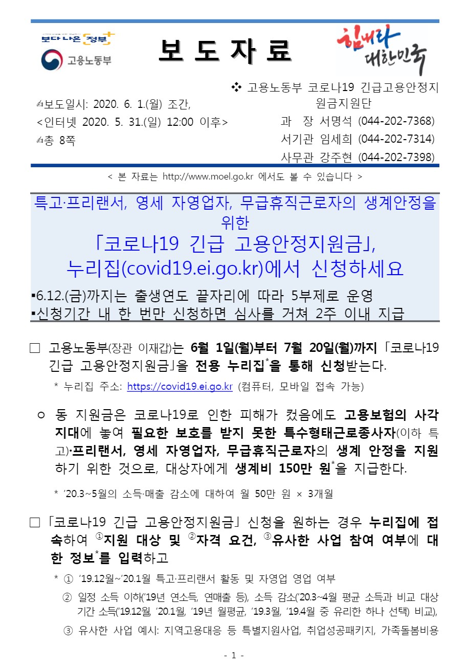 6.1 코로나19 긴급 고용안정지원금 홈페이지에서 신청하세요(코로나19 긴급지원단) 보도자료
