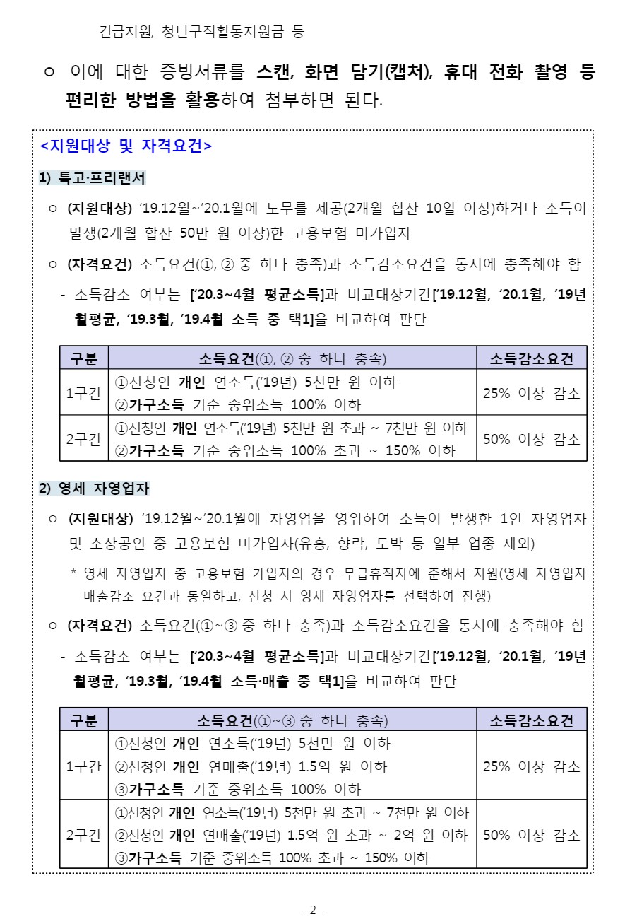 신청자는 지원금 지급 요건에 해당하는지 입증할 서류를 스캔, 캡처, 휴대전화 촬영 등으로 파일로 만들어 첨부하면 됩니다.