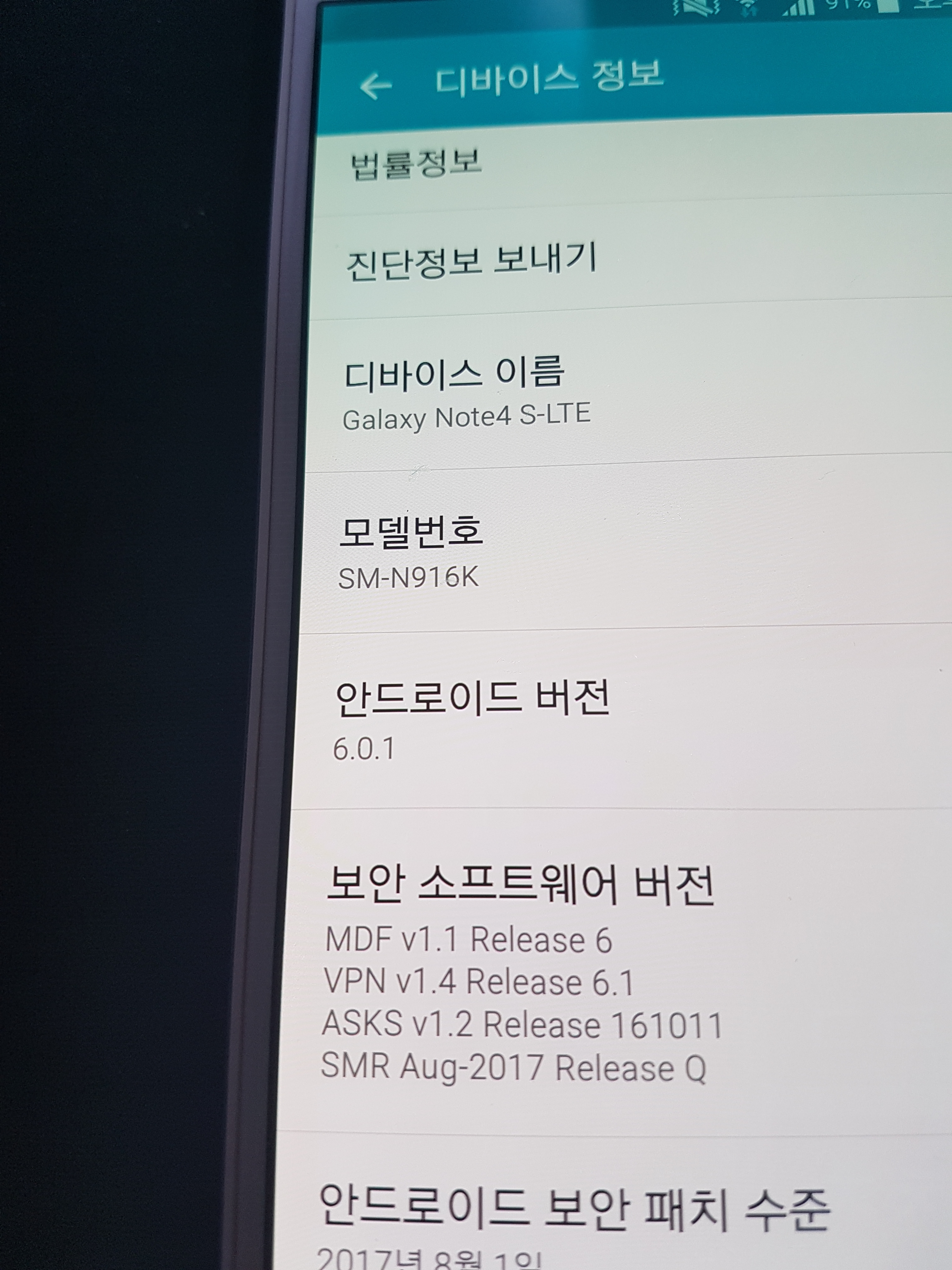 구입한 모델은 SM-N916K 즉 KT향 스마트폰인데 몇일전 개통한 SK망을 사용하는 티플러스 유심을 끼워봤습니다.