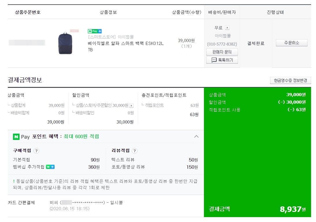 네이버 멤버십이 일단 가입하면 한달이 무료라 사용중입니다. 구매후 기본 적립과 멤버십 추가 적립이 있습니다.