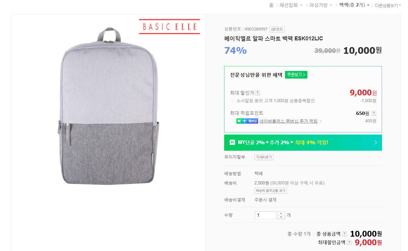 아마도 많이 팔렸을꺼같은데 지하철에서 같은 모델의 백팩을 메고 있는 사람을 발견할지도 모르겠습니다.
