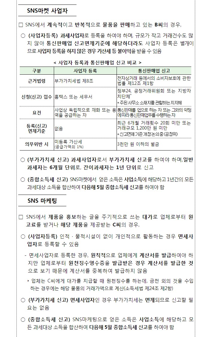 수익형블로그같은 경우 SNS마켓 사업자로 분류된다고 합니다.