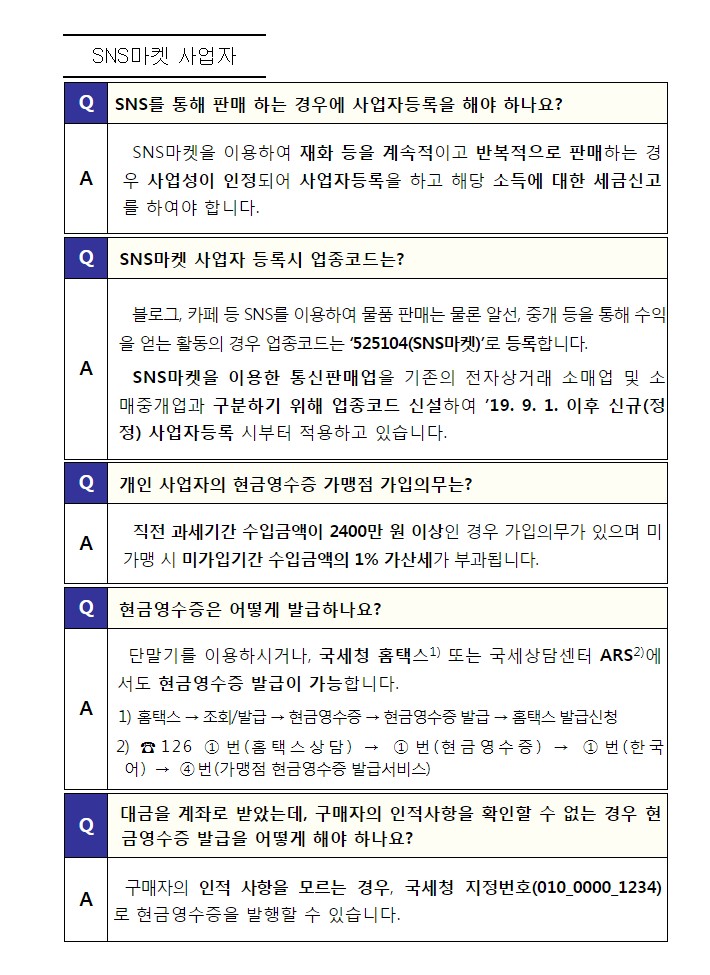 이 포스팅은 서울지방국세청 신종업종 세정지원센터 ( 연락처 02-2114-2819 )의 전화상담을 기반으로 작성되었습니다.