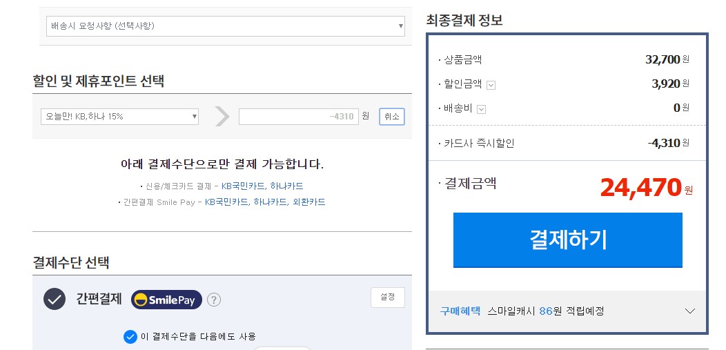 금요일 넘어가니 계전가전쿠폰이 생겼습니다. 국민카드, 하나카드로 결제하면 15% 더 할인해줍니다.