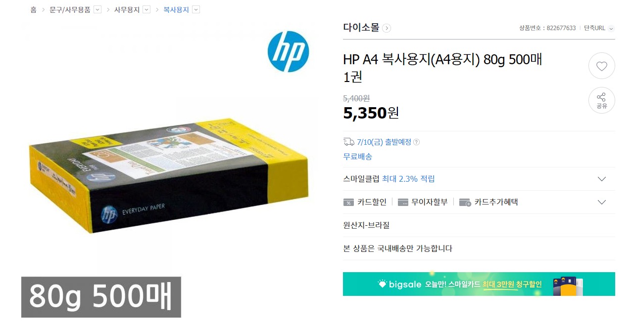 | 복사용지/A4용지/복사지 최저가 HP A4 80g 500매 1권 (0) | 2020.12.28 |