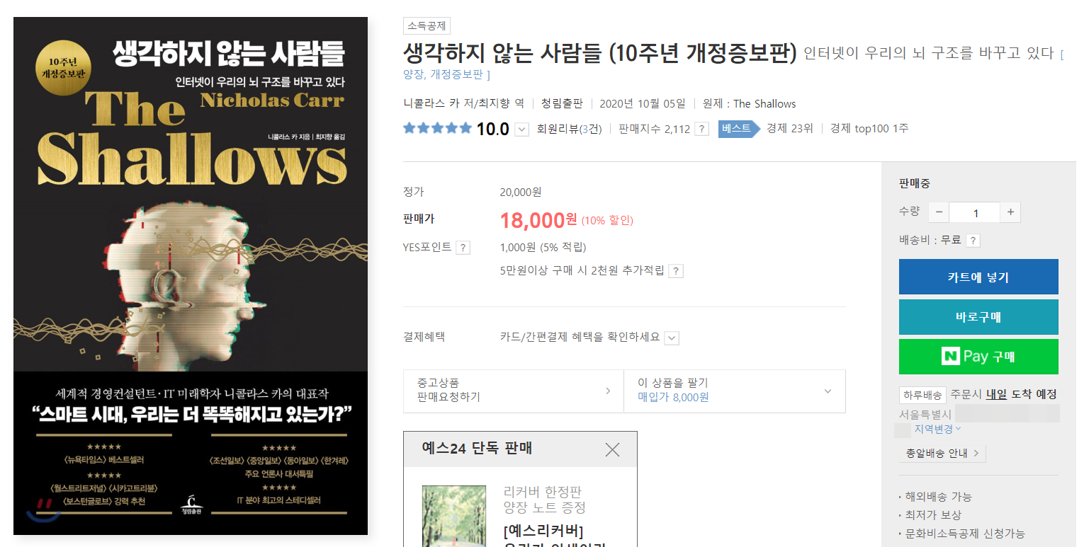 원래 15000원이였는데 3000원 인상되서 10주년 개정증보판을 18000원으로 인터넷에서 구입할 수 있다.