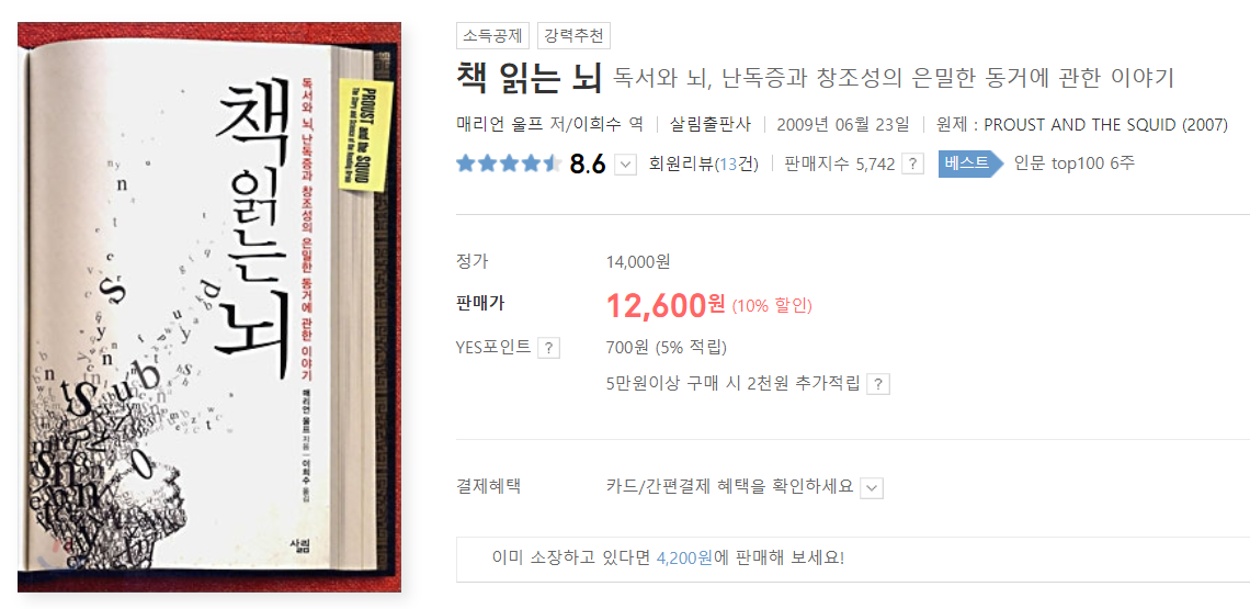 책 읽는 뇌 : 원제는 ‘Proust and the Squid(프루스트와 오징어)’
