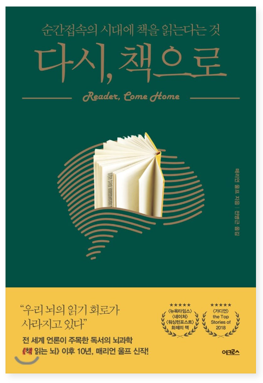 책 읽는 뇌가 언어의 바다 곳곳을 깊숙이 헤엄치며 신비를 경험한다면, 인터넷을 하는 뇌는 바다의 겉만 훑으며 시원한 바람만 즐기고 있을 뿐이다.