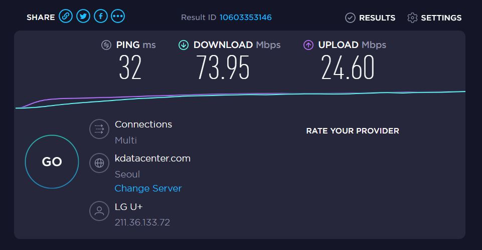 유심을 장착하고 모바일핫스팟 속도를 노트북에서 측정해보니 속도는 괜찮은데