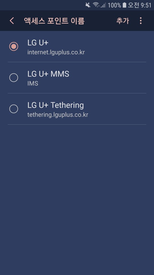 1. 설정에서 '모바일 네트워크'를 아래와 같이 액세스 포인트를 2개 추가 해줍니다.