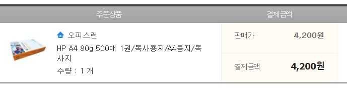 예전에 무료배송으로 4200원에 구매했는데 이번에는 배송비가 붙는 대신 500매 1권당 2590원입니다.