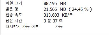 실제 노트북으로 모바일 핫스팟을 연결해 다운로드 속도를 캡쳐해봤습니다.
