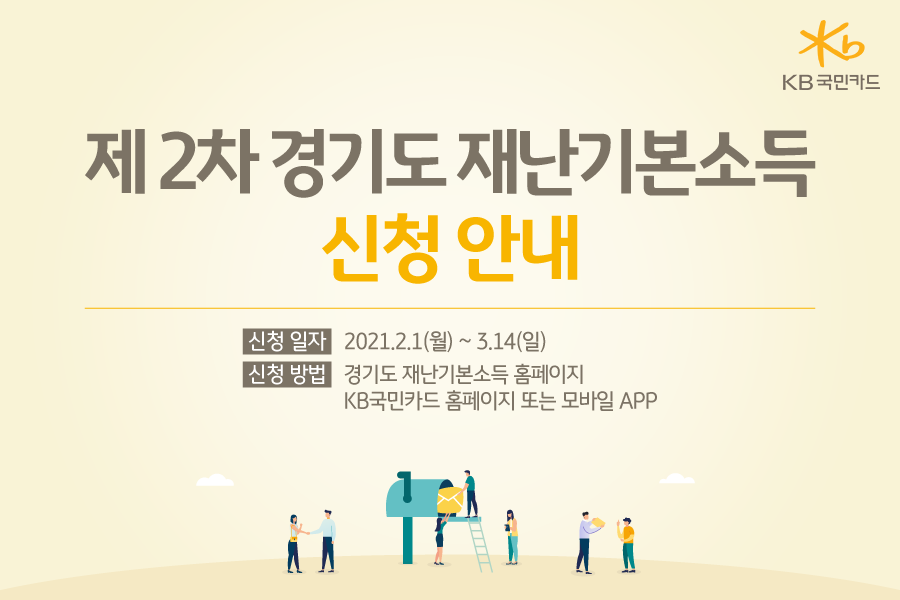 ‘사회적 거리 두기 2.5단계’를 지속하며 정부는 물론 전 국민이 코로나 19 확산 및 사전 예방을 위해 힘쓰고 있습니다. 이렇듯 코로나 19로 모두가 힘든 요즘, 경기도청에서도 위안이 될만한 소식을 발표했습니다. 바로, 경기도에 거주 중인 내국인을 대상으로 ‘재난기본소득’을 지급하기로 했는데요. 이번 제 2차 경기도 재난기본소득 정책에는 저희 KB국민카드도 함께 합니다. 현재 소지하고 있는 신용카드와 체크카드로도 손쉽게 받을 수 있는 기본소득 혜택! KB국민카드에서 그 신청 방법을 지금 바로 소개해드립니다.