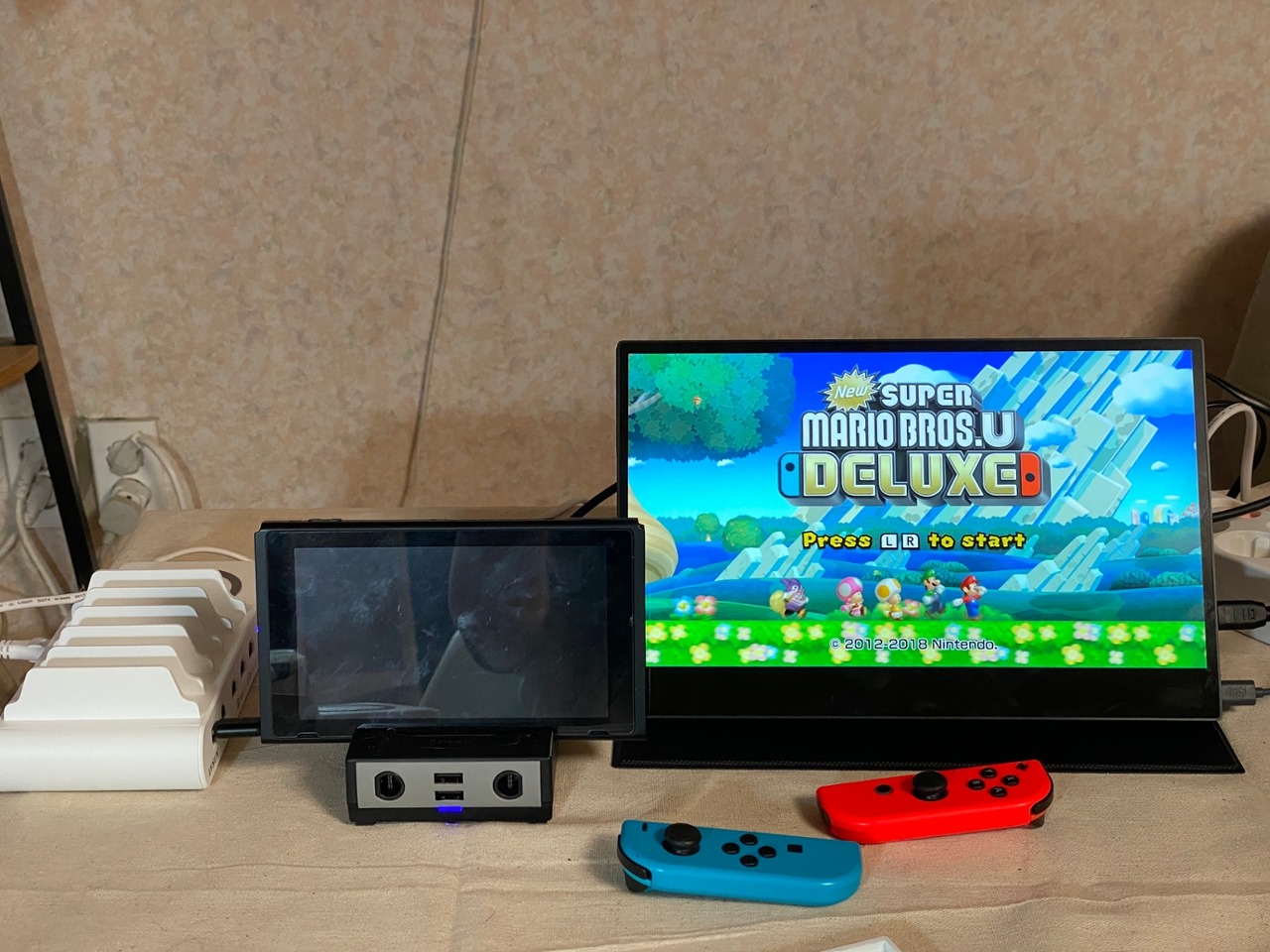 닌텐도 스위치의 독모드 출력 가능 여부도 테스트했다. 포터블 모니터의 전력은 외부 전력으로 공급하였으며, 닌텐도 스위치 독에 USB-PD 충전기를 연결해 출력이 되나 확인했다. 버바팀 USB-PD/QC3.0 55W는 출력이 불가능했고 LVSUN QCPD130W는 가능했다.