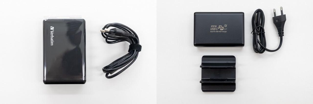 55W 출력의 버바팀 USB-PD/QC3.0 55W는 스마트폰, 스마트워치, 코드리스 이어폰, 태블릿PC를 사용하는 이들에게 적합하고, 반면 아임커머스 LVSUN QCPD130W는 최대 110W 출력을 지녀 노트북을 함께 충전하는 것도 가능하다.