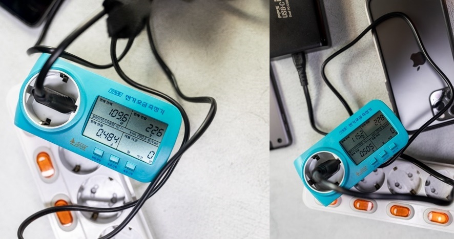 테스트는 3대의 기기 모두 15% 미만인 상태에서 진행됐으며, 전력측정기를 이용해 소비전력을 확인했다.