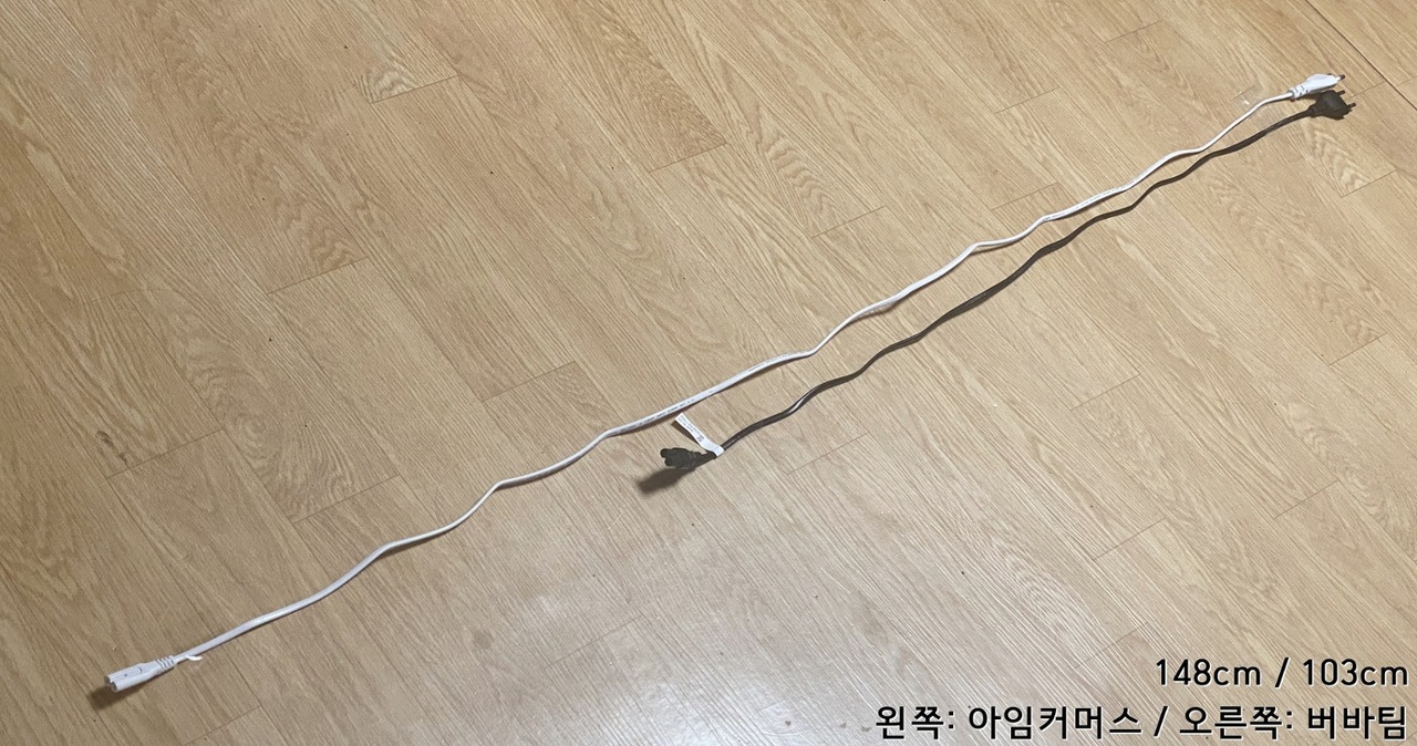 AC 케이블은 두 제품 모두 접지를 지원하지 않는 타입이다. 리뷰어가 길이를 직접 비교해보니 버바팀 제품은 150cm, 아임커머스 제품은 90cm로 확인됐다. 리뷰어는 "아임커머스 제품의 기본 케이블이 짧아 책상 위에서 사용하기 난감했다"고 아쉬움을 표시했다.