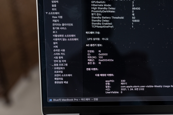 총출력 테스트와 발열체크도 진행됐다. 버바팀 USB-PD/QC3.0 55W의 USB-PD 포트에 맥북 프로 2020 (13형)을 연결했습니다. 시스템 리포트에서 확인해보니 30W 충전으로 인식됐다. 여기에 아이폰 11 프로를 QC 3.0 포트에 연결하니 약 12W를 기록했다.