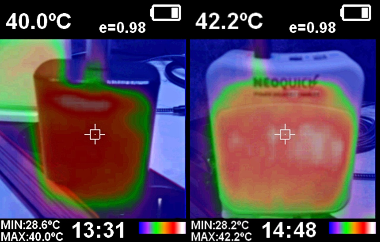 이 상태에서 20분이 경과된 뒤 발열 측정이 진행됐다. 측정 당시 실온은 17도이며, 바닥에 내려 둔 상태로 진행됐다. 바닥 난방은 꺼진 상태다.