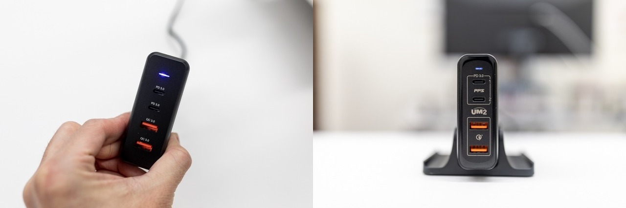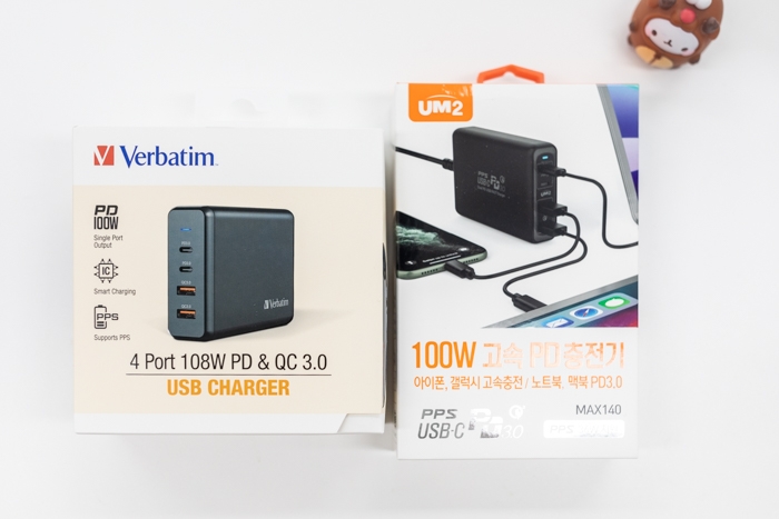 사용하는 디바이스가 많아지면서 여러기기를 한 번에 충전하려는 니즈가 크게 늘었다. 이에 다양한 브랜드에서 멀티충전에 특화된 USB-PD 충전기를 출시했다. 리뷰어가 비교한 '아임커머스 UM2 MAX140'와 '버바팀 156W 4포트'도 멀티 디바이스 충전 수요에 발맞춰 출시된 제품이다.