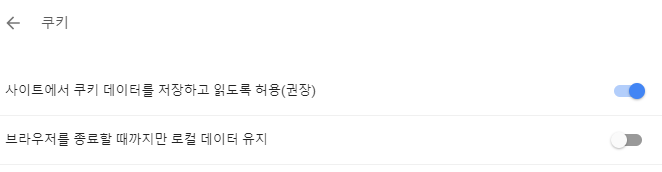 주소창에 입력 -> chrome://settings/content/cookies