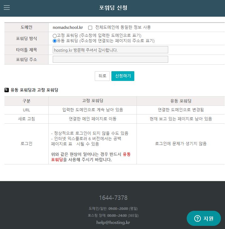 포워딩을 신청하면 고정 포워딩과 유동 포워딩이 나오는데 유동 포워딩을 추천드립니다.