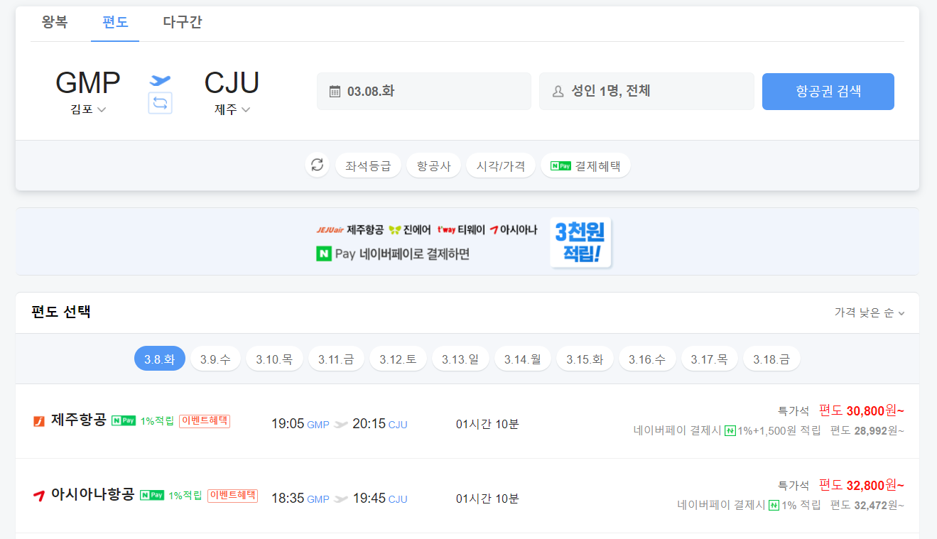 pc네이버나 모바일네이버에서 '김포 제주 항공권'으로 검색하시면 됩니다.