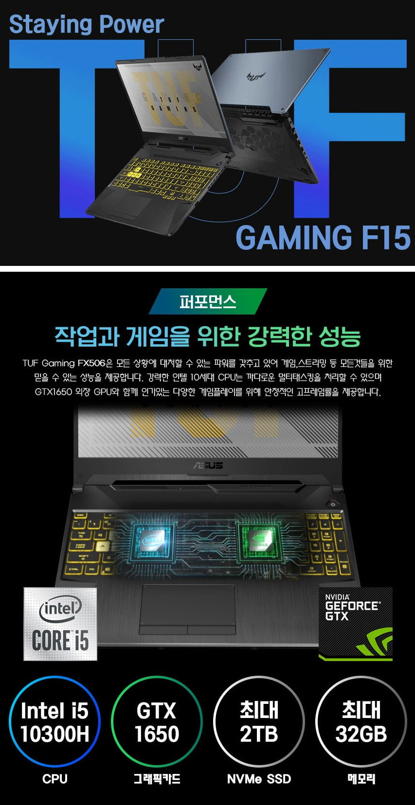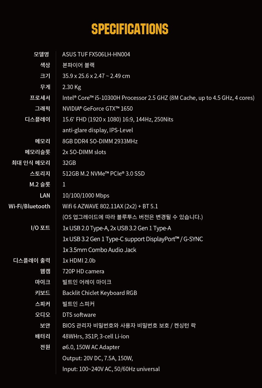 단 문제는 경이로운 가격에 비해 게이밍 노트북이라고 불리우기엔 좀 구형스펙이긴 한데요 그래도 사무용 노트북 가격에 지포스 1650 외장그래픽이 달려있고 저장공간도 512GB SSD에 CPU도 10세대 H붙은 모델이라 일반 사무용 노트북 보다는 성능이 좋을듯 합니다.