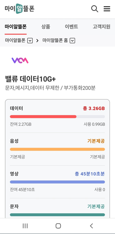 밸류컴이라는 알뜰폰회사는 앱도 없고 자사 홈페이지에서도 데이터나 통화 사용량을 볼수가 없습니다.