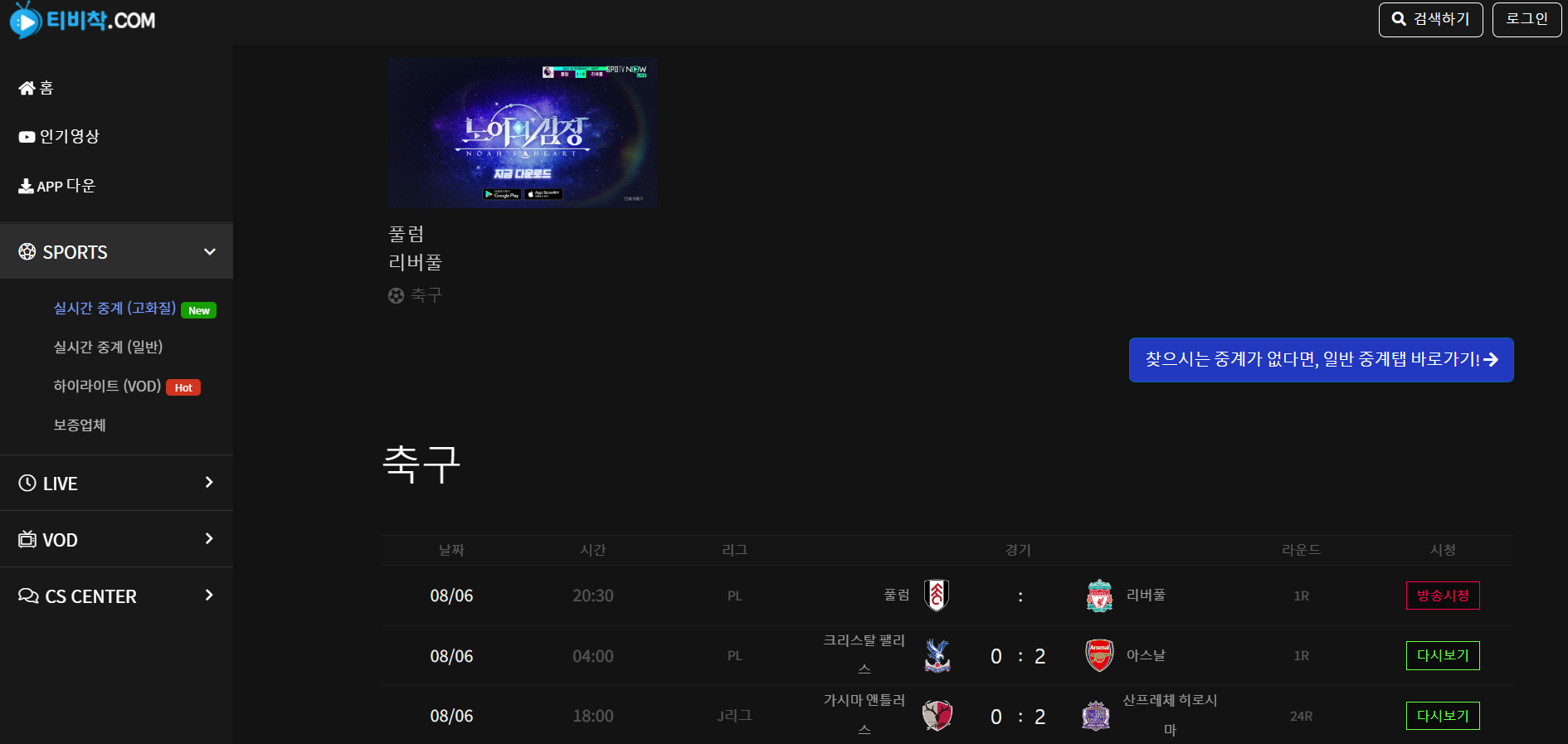 티비착홈페이지 - 스포츠 - 실시간중계(고화질)에서 보시면 됩니다.