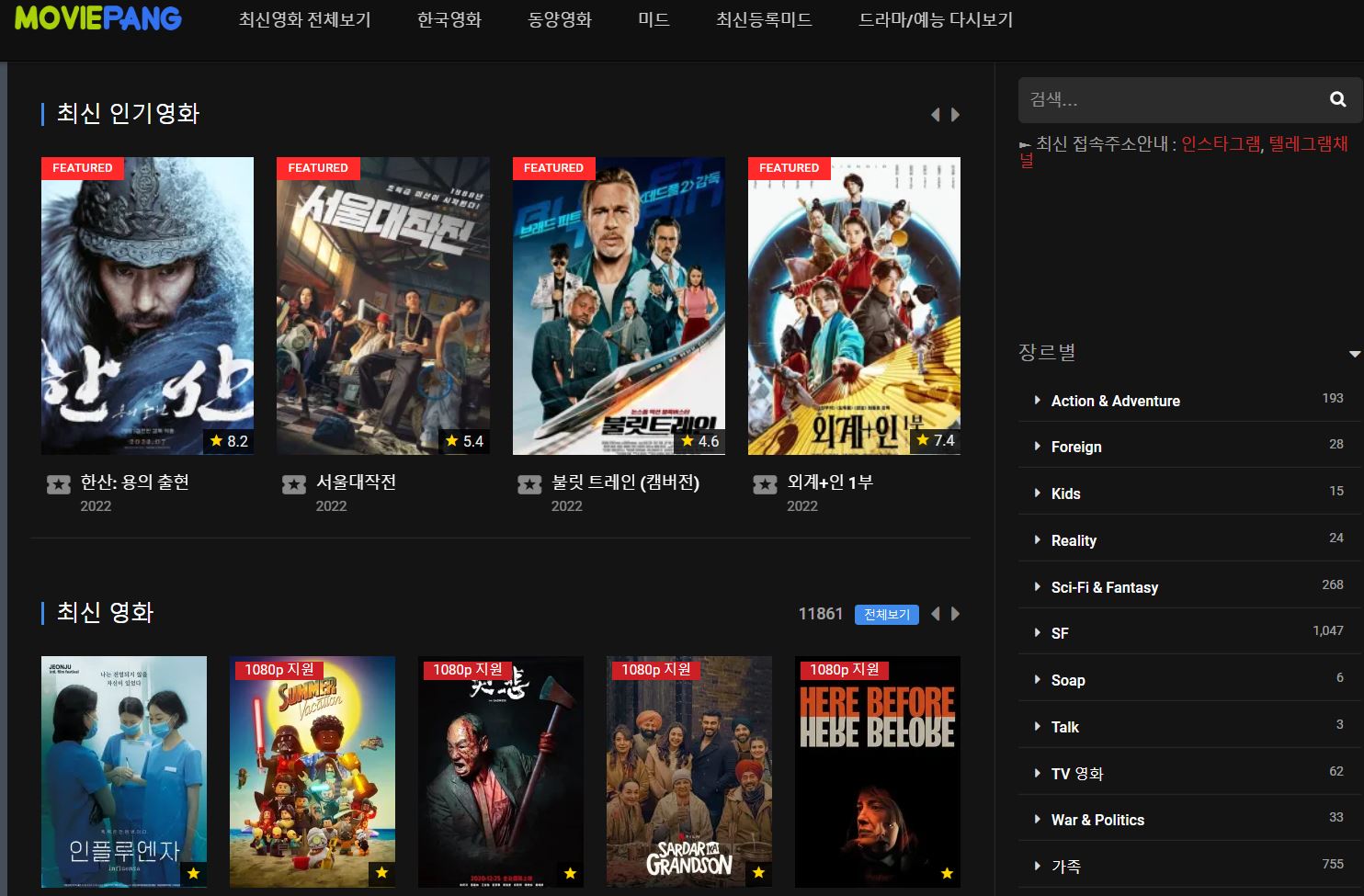 드라마 뿐만 아니라 영화와 애니도 함께 서비스하고 있어서 사이트 하나로 모든 콘텐츠를 이용할 수 있습니다.