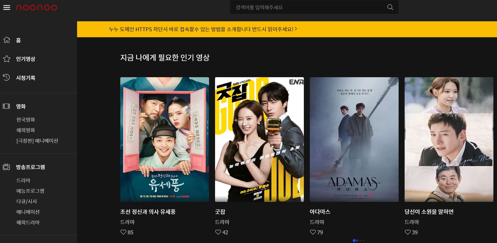 드라마 뿐만 아니라 영화와 애니도 함께 서비스하고 있어서 사이트 하나로 모든 콘텐츠를 이용할 수 있습니다.