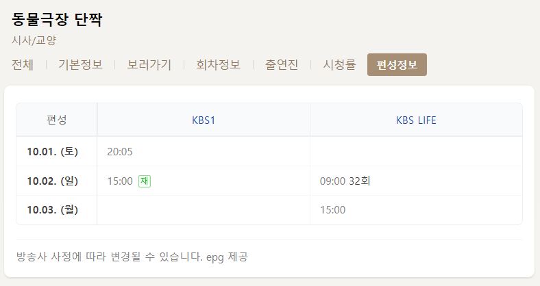 재방송 편성정보