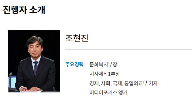 - 뉴스의 인물을 조명하며, 당국자와 전문가를 초대해 정책 및 현안을 심층 진단합니다.