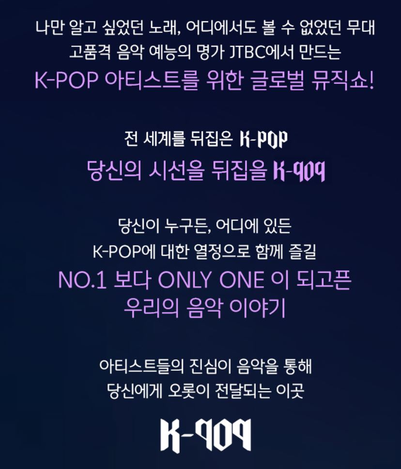 JTBC에서 방영중인 음악 예능 프로그램. 뮤직 유니버스 K-909라고도 한다.