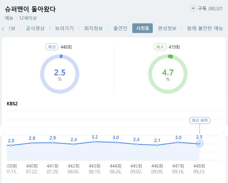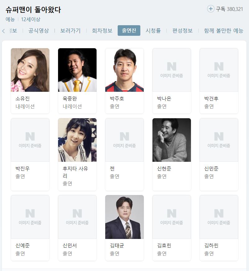 슈퍼맨이 돌아왔다 보러가기 재방송 지난회 무료 다시보기 방송시간 출연진 시청률 정보