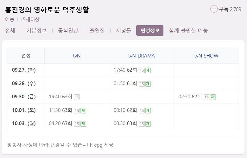 tvN 홍진경의 영화로운 덕후생활 다시보기 정보