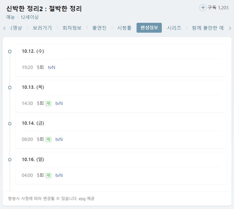 방송시간 tvn 매주 [수] 저녁 7:20 방송