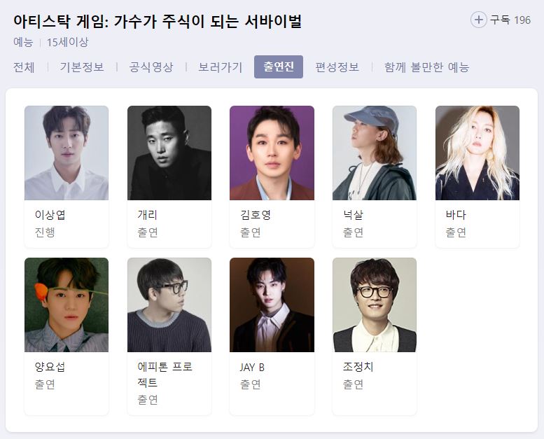 아티스탁 게임 : 가수가 주식이 되는 서바이벌 재방송 보러가기 지난회 다시보기 정보 출연진 방송시간