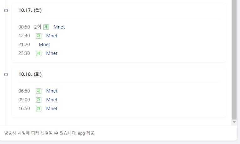 방송 시간 mnet 매주 월요일 오후 9시 20분