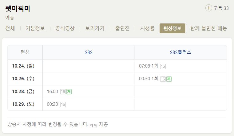 방송시간 sbs 매주 금요일 밤 12시 30분 방송