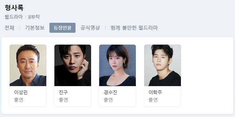 형사록 보러가기 무료 재방송 지난회 다시보기 등장인물 몇부작