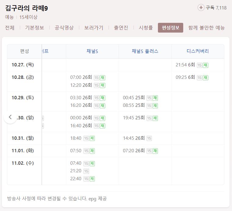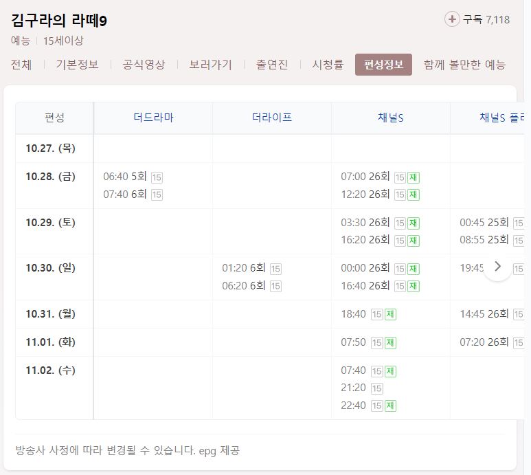 재방송 편성정보