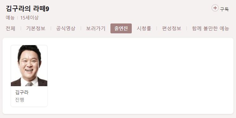 김구라의 라떼9 재방송 보러가기 지난회 다시보기 정보 방송시간 출연진