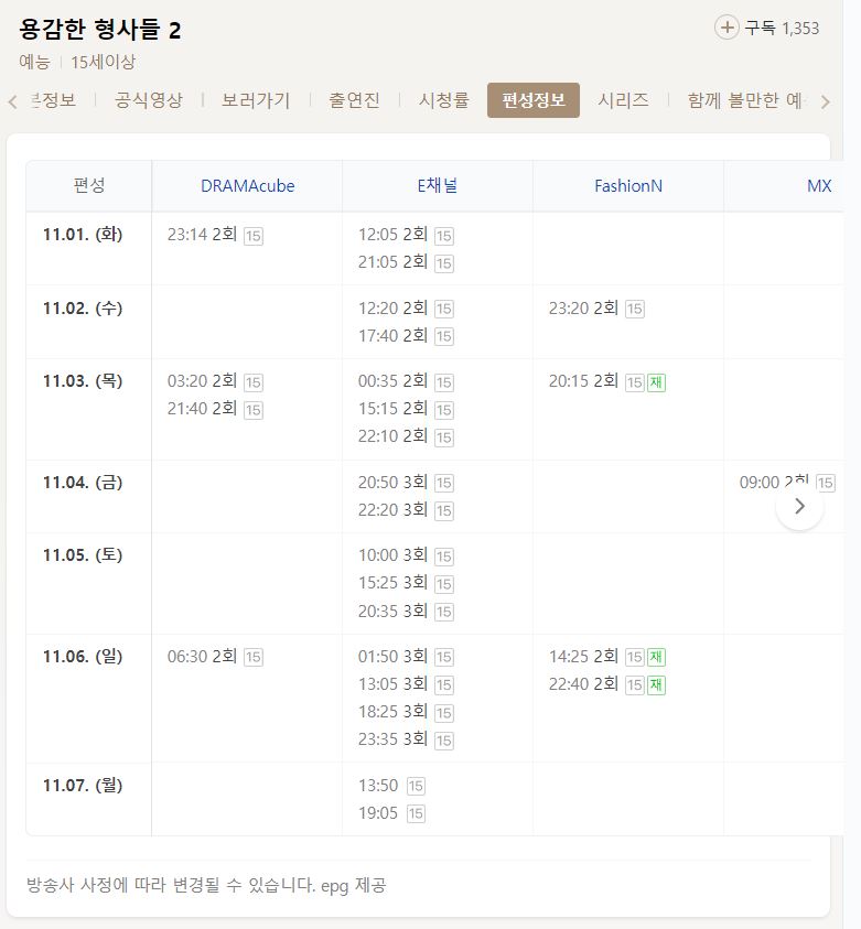 재방송 편성정보