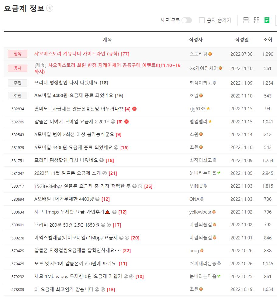 간단하게 회원가입하고 요금제 정보 게시판에서 확인하세요.