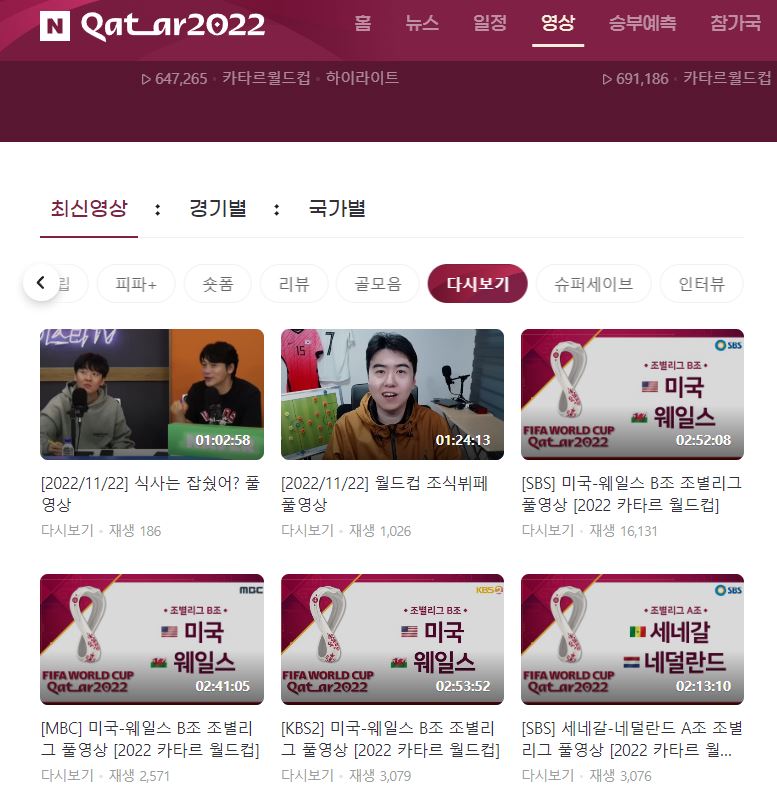 1. 월드컵 생중계를 무료로 볼수 있는 네이버에서 무료 다시보기도 가능합니다.