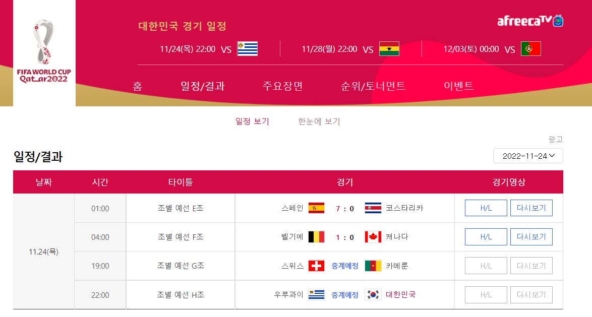 카타르 월드컵 무료 다시보기 지난 경기 보러가기